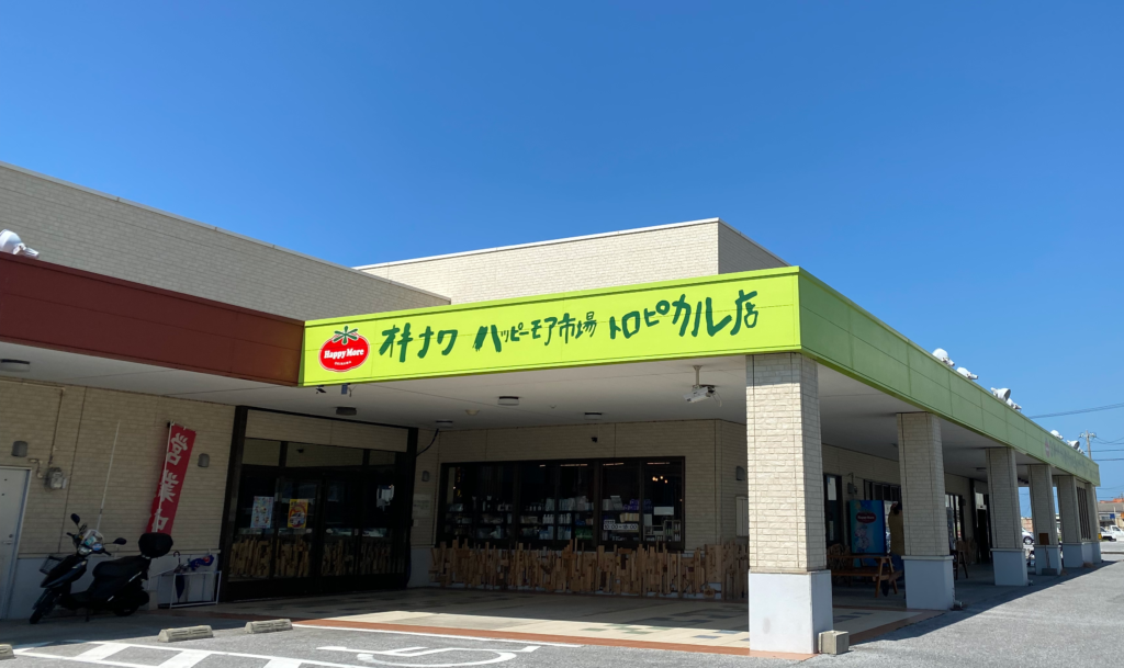 地元の幸を楽しむなら道の駅へ。那覇から車で30分程度の距離にある宜野湾の「ハッピーモア市場 Tropical店」。ここは地元の野菜や加工品を多く扱っています。
